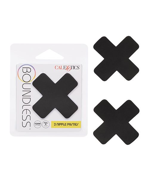 Give your goodies a seductive upgrade with the edgy Boundless 2 Nipple Pasties. These sexy pasties are ready to play with a form-fitting design, self-adhesive tape, and bold "X" shape. The form-fitting design and self-adhesive tape are made for extended playtime and can stay in place no matter how much you shake and shimmy. The glamorous nipple pasties are the perfect addition to any wild music festival look, rave outfit, Pride ensemble, or as luscious lingerie. Easy Application - Thoroughly clean and dry desired location, peel and stick adhesive tape, and press firmly in place to ensure long-lasting wear. For best results, avoid using lotion or oil on location prior to use and apply any makeup/jewels/glitter after applying pasties. Manufacturer's warranty.