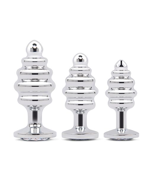 Gemsations 3 Piece Rippled Bling Bling Metal Butt Plug Training Set