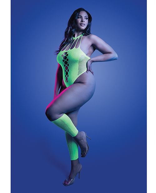 UV reactive rhinestone knit teddy and matching gloves, which can also be worn as leg warmers. Hand wash separately in cold water. Do not bleach. Flat dry.