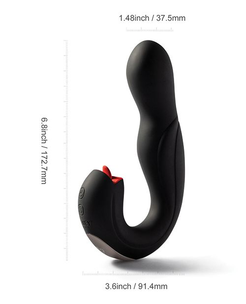 Your one-of-a-kind orgasmic vibrator is now compacted with Honey's exclusive remote control to free your pleasure and unleash your sexual fantasies go wild. The innovative red lip and flirty tongue are born to evoke your desperation towards orgasm and entice you to give them a ride. With 7 tantalizing lick functions, Joi Pro offers varying levels of intensity and pleasure for your C-spot, nipples, or any other sensitive spots. Simply apply water-based lube around the tongue, switch it on, and dive into the ultimate pleasure that this elegant sex toy provides. Joi Pro's 7 intense modes offer a range of sensations, from gentle caresses to powerful pulses, providing you with endless pleasure possibilities!
