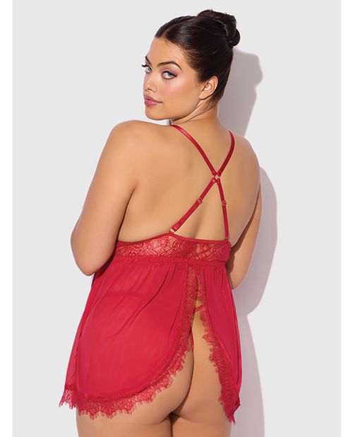 House of Desire Mila Eyelash Lace & Mesh Babydoll With G-String