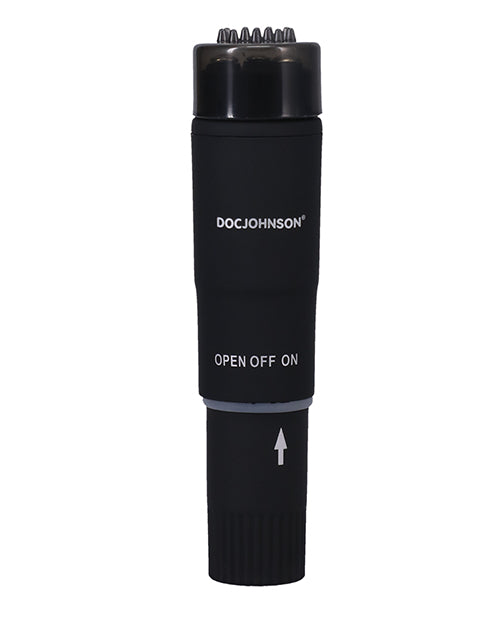 It's the discreet mini-vibe that became a household name. Doc Johnson's Pocket Rocket, the best-selling compact vibrator, is built around a small but mighty motor that delivers targeted clitoral stimulation. Use with the classic pleasure-beaded cap on for an extra-stimulating texture, or remove it so nothing comes between you and those powerful rumbling vibrations. Pick one up and get ready to see stars. Made in the USA
