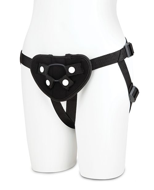 Give your partner the pleasure they want and deserve with the Lux Fetish Neoprene Strap-On. A comfortable secure harness in neoprene fabric, 4 way adjustable straps that fits up to 60 inch hips, and a perfectly placed bullet vibe pocket for endless clitoral stimulation is a great way for beginners to light up the bedroom. This strap-on can accommodate any dildo with a flared base, and includes 2 rubber holder rings. The rubber rings can secure dildos of various sizes to the harness for a wide variety of ways to play. Explore pegging to stimulate his P-spot while you also enjoy the intense pleasure of clit stimulation as the vibrating bullet sends sensation directly to your clit. The soft and extremely comfortable harness is easy and fun to wear with an adjustable size that fits a wide range of body types.