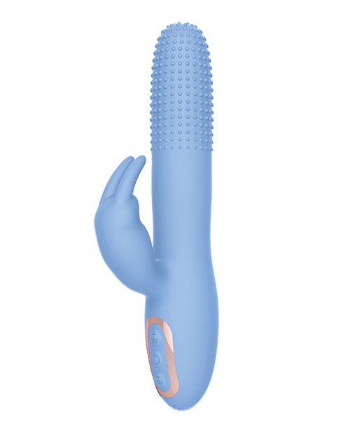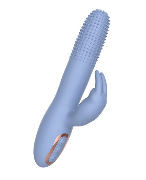 With 10 vibrating functions and dual motors, this USB rechargeable massager offers a range of sensations to suit your mood. The insertable end features a textured shaft, providing extra stimulation for a deeper, more fulfilling experience, while the external stimulator is equipped with fluttery bunny ears, perfect for teasing and pleasing sensitive areas.