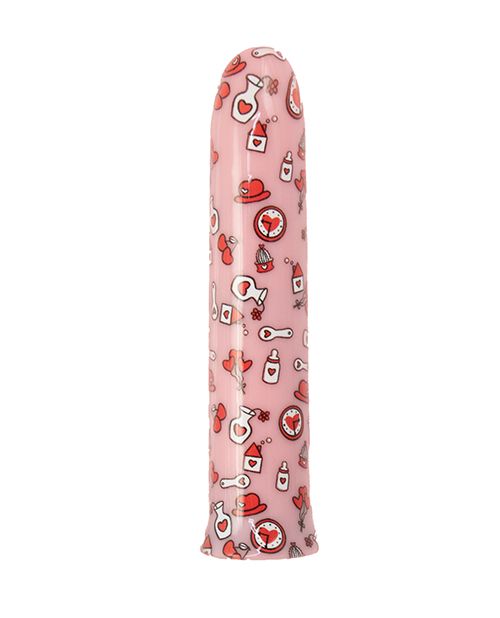 Fall head over heels for the Nasstoys Mini’s Passion Bullet, a charming little vibe that’s big on playful pleasure. With its sweet pink design covered in balloon hearts, hats, vases, and more, this lipstick-shaped bullet feels like a love letter to your body.