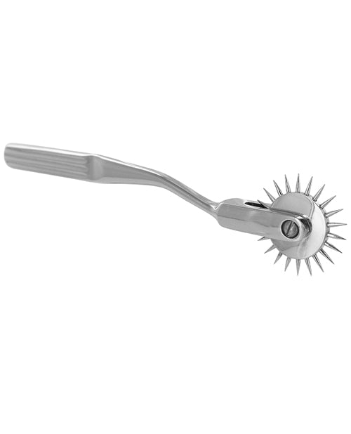 Test the limits of sensitivity play with the Odax Sensation Wheel from the Master Series. Run this premium spiked wheel across the skin and other highly treasured areas for an exciting prickle of pleasure. Made of stainless steel and deviously designed with a row of evenly spaced sharp pins that turn smoothly as it rolls across the flesh, the Odax is ideally designed for intense, exquisite pleasure. Take it to the next level with a little temperature play...the slick material of the Odax can be warmed or cooled for an extra spike of sensation.