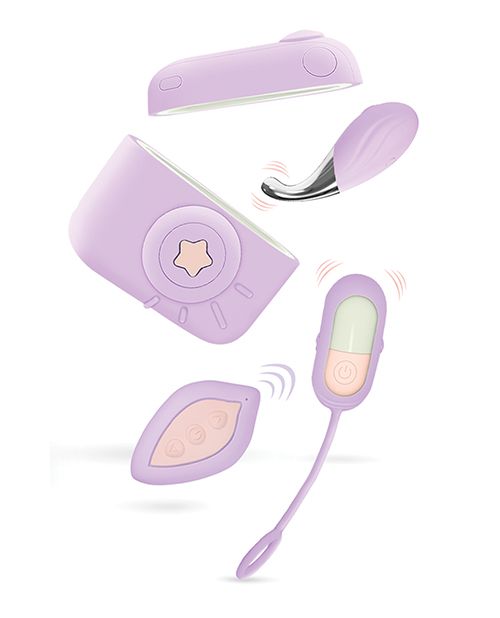 Capture your pleasure from every angle with Snapstar! This 4-piece vibrator set is your all-access pass to pleasure, featuring a discreet, camera-inspired travel case, a mini wand, a bullet vibe, and a wireless remote for hands-free play.