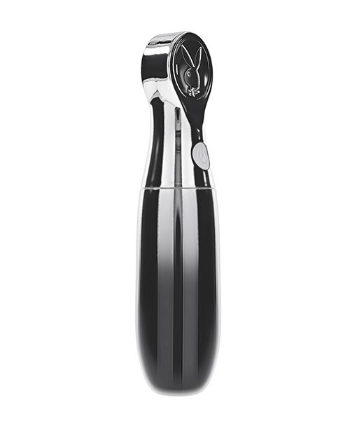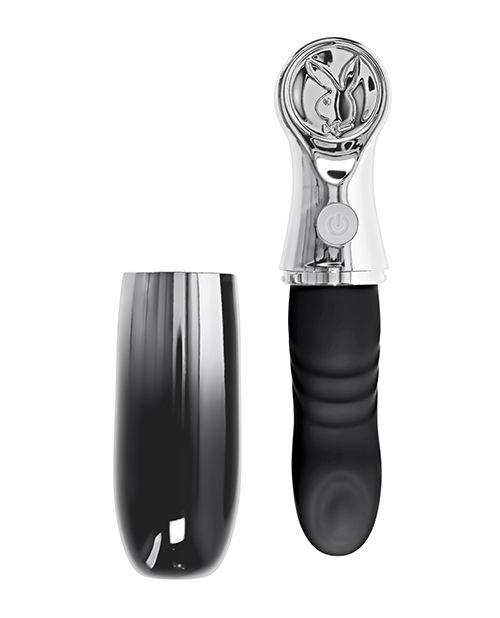 Bon Voyage! We’ve got your travel adventures covered with this powerful tapping toy you can pop into any purse, bag or carry-on luggage for pleasure on the go! The chunky shaft is ribbed for extra sensation and comes to a head with 7 speeds and rhythms of tapping in the beautifully angled tip. With its ombre chrome carrier that twists into place right underneath the ergonomic Playboy rabbit head, your toy is fully protected until you pull it out for play time whenever you like. Heading to the hot tub? Bon Voyage can join your water games as it’s completely submersible!