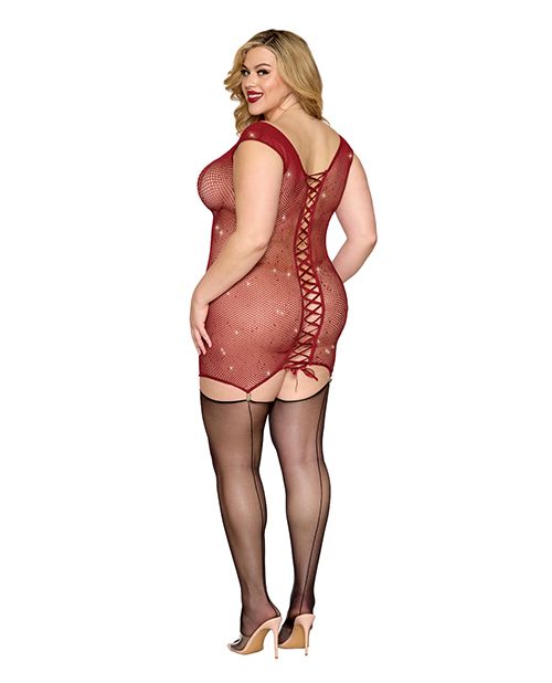Red Diamond Seamless Chemise With Rhinestone Accents & Mini Suspender Clips