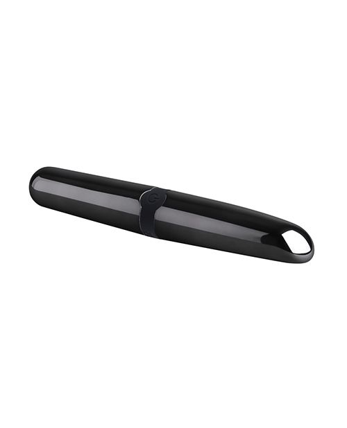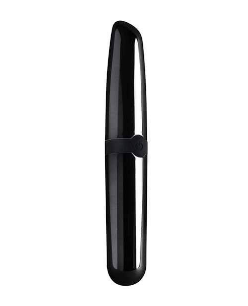 A powerful vibrating bullet with a sleek, black-chrome look. Double-ended with a lipstick shape on one side and rounded tip on the other. Five Year Warranty.