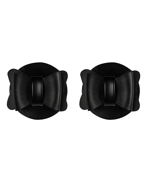 Seductive yet sophisticated, the Bow Tie Pasties will add a touch of elegance to any outfit or lack thereof. After peeling back the protective film to expose the adhesive layer, the soft and pliable faux leather will mold securely to the curves of the breasts, covering the nipples. Dress them up under a silky blouse or dare to bare them alone, leave as much or as little to the imagination as you desire.