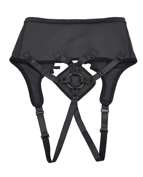 Explore powerful intimacy through the perfect blend of comfort and control with the High Waisted Corset Strap On. Designed with a high 9uality, stretchy fabric, the soft material forms comfortably across your body and uses adjustable corset laces to find the the perfect fit. The added adjustable straps leading to the padded O Ring connector keeps your dildo secure with use and flexible to adapt to wherever your play takes you. Express your desires in the soft commanding presence of your self-assured sensuality and delve into pleasure that has no limits.