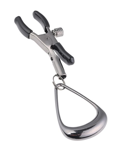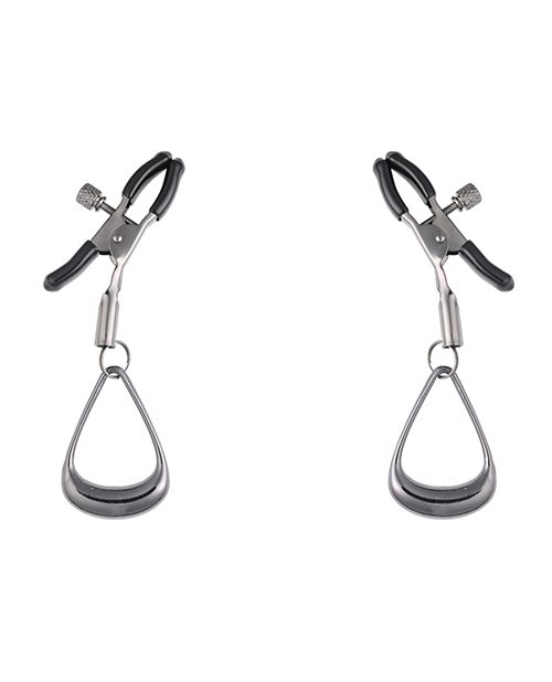 Discover a new dimension of sensation with the Velvet Noir Tuggable Nipple Clamps. These hematite-plated clamps are as elegant as they are functional, offering a gentle pinch perfect for beginners while still packing enough versatility for more advanced players. The circular loop design adds a unique element—lightly weighted for subtle stimulation, but also ideal for threading rope, chain, fingers or other accessories to intensify the experience with pulling, tugging, or restraint play. Whether you're teasing your way through foreplay or taking things further, these clamps are crafted for comfort, control, and connection.