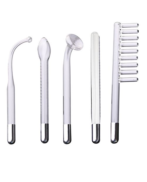 Amaze your partner with visual and sensational delights! Dive into thrilling sensations with this complete violet wand kit designed for electrifying fun. Packed securely in a sturdy metal aluminum and wood case, it includes everything you need to create an unforgettable and electrifying scene. Experience the mesmerizing purple glow emitted from each of these classic violet wand shapes! Explore the unique sensations of each electrode and try out the comb, mushroom, pinpoint, spoon, balltip, and plasma globe. Enjoy the steady, strong electric current of these solid-state wands for smooth, uninterrupted play. Adjust the intensity to cater to each person you play with. Go beyond the glowing glass and elevate your experience with conductive metallic tools like the Wartenberg wheel, Rollenstein, and ball chain flogger. Get intimate and use the body contact plate, allowing your entire body to transmit tingling electricity with every touch. Just plug in and play—no power box needed!